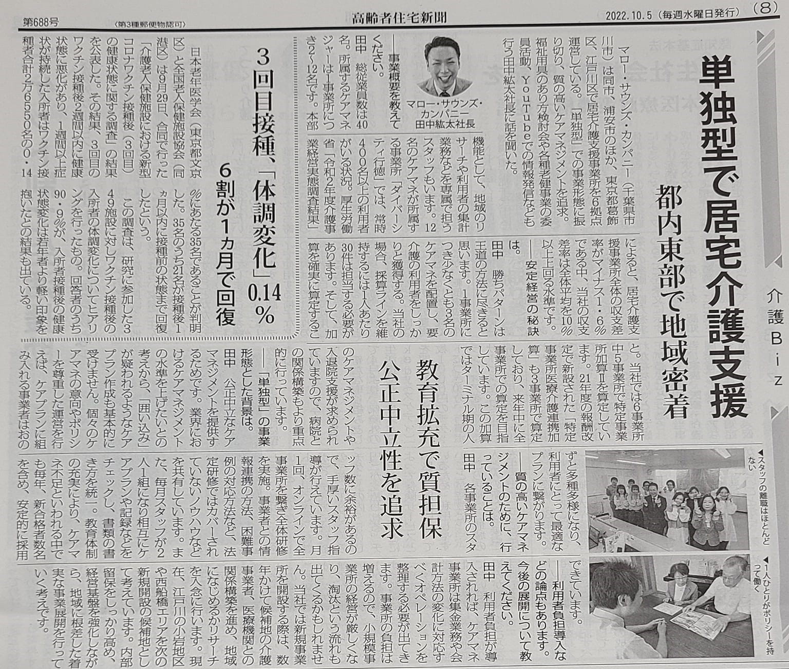 高齢者住宅新聞/単独型で居宅介護支援事業所 6拠点 都内東部で地域密着