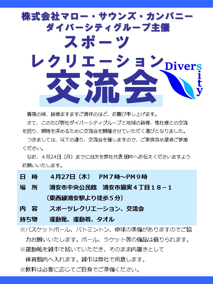 この度、弊社 ダイバーシティグループと地域の皆様・他社様との交流を図り親睦を深める為に