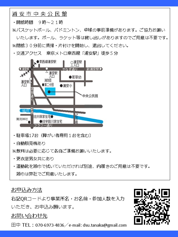 | 場所 | 浦安市中央公民館 浦安市猫実4丁目18-1 (東京メトロ東西線浦安駅より徒歩5分) |